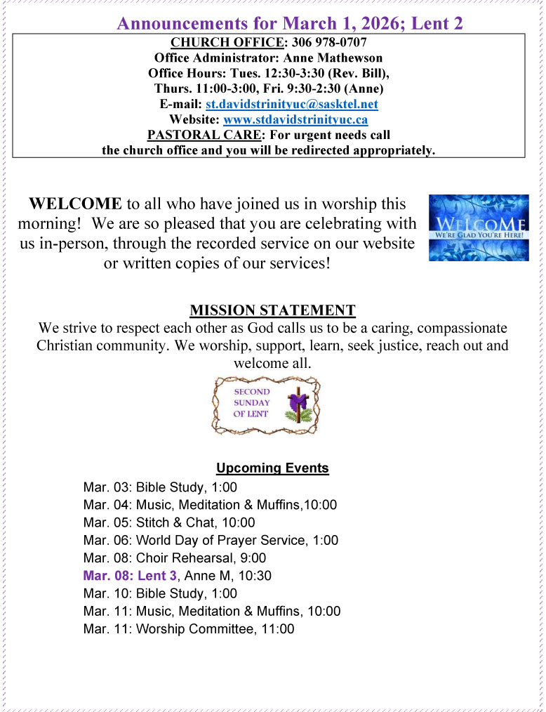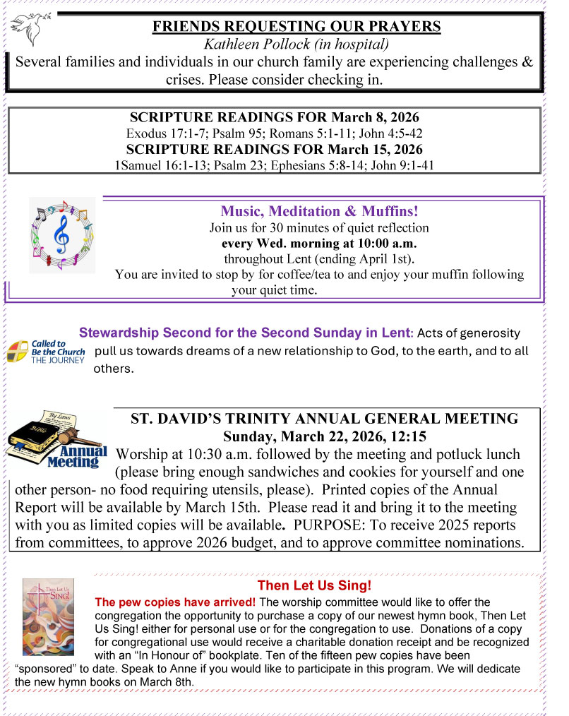 by St. David's Trinity | Feb 27, 2026 | Announcements | 0 comments